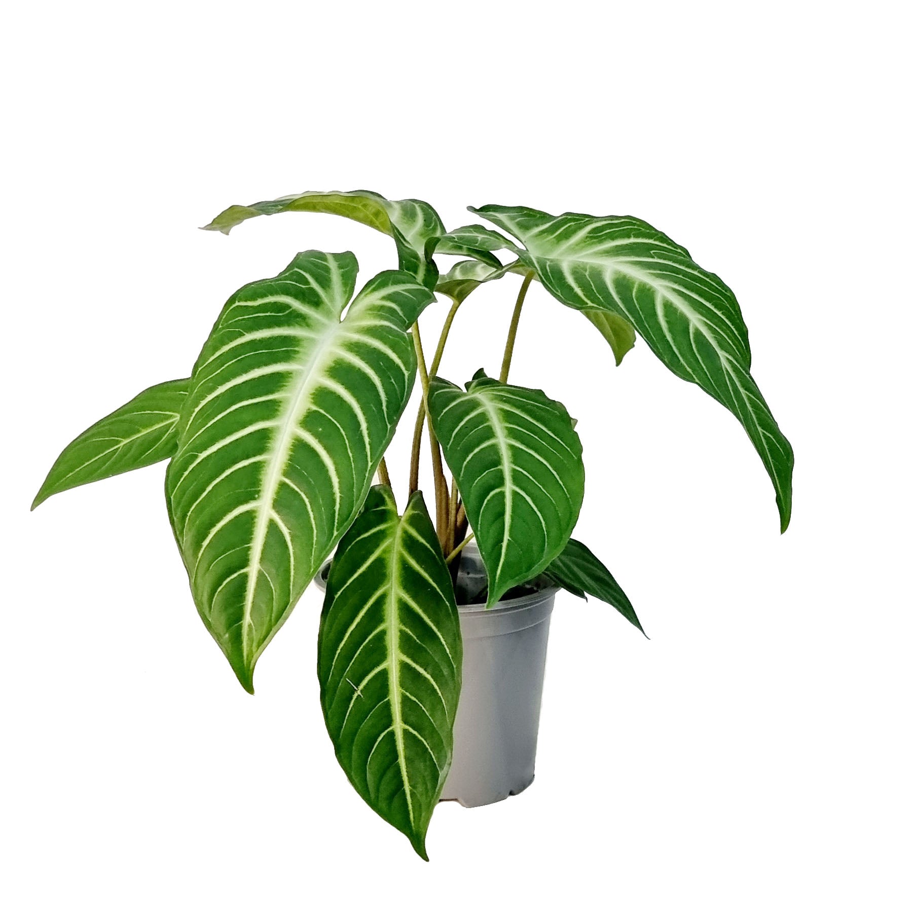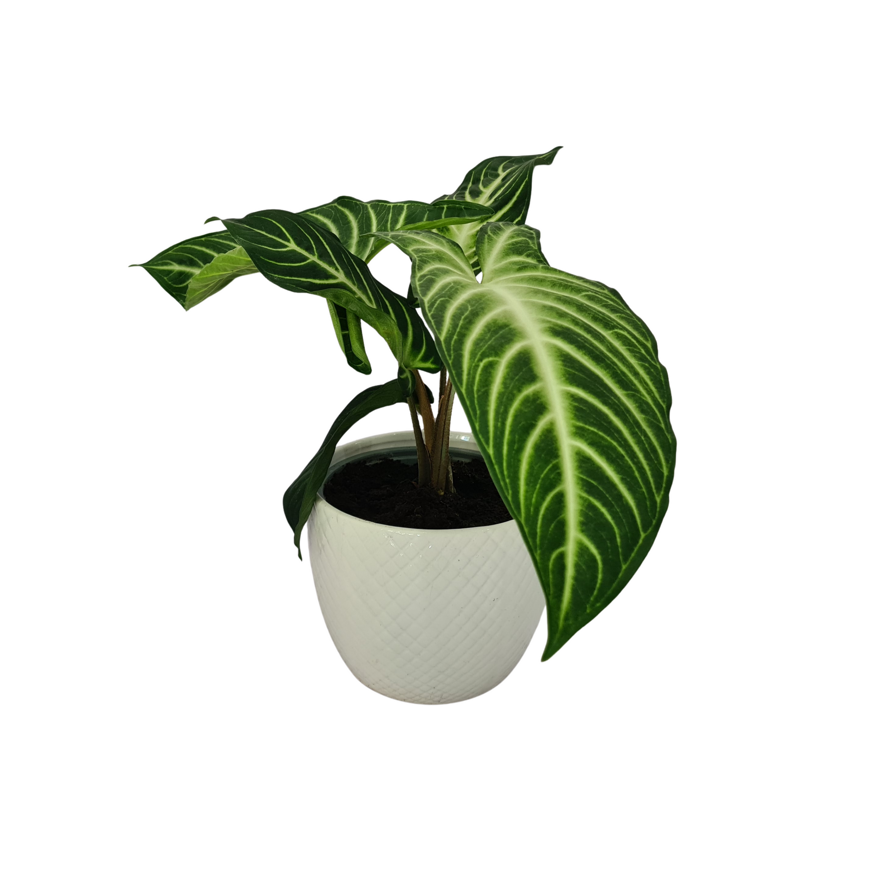Caladium Lindenii also known as Xanthosoma lindenii, is a striking tropical plant known for its large, dramatic foliage.  The most notable feature of Caladium Lindenii is its stunning leaves with bold, contrasting vein patterns. These leaves make the plant a standout piece in any collection.